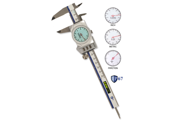 Kency Combined 2 in 1 Digital Calipers 6' / 150mm IP67 Dial Caliper 0.01/0.0005''/1/128'',6 Inch, Metric and Fractional Conversion Shockproof Calipers for Industrial Laboratory & Measuring Applications
