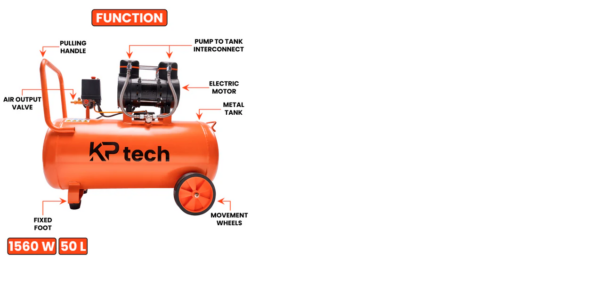 KP Tech BK-AC50L Oil free and silent 50L Tank Air compressor 1560W