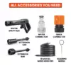 - Accessories Included:Â 1 Set Metal Spray Gun, 2 Quick Connectors, 1 Water Connector