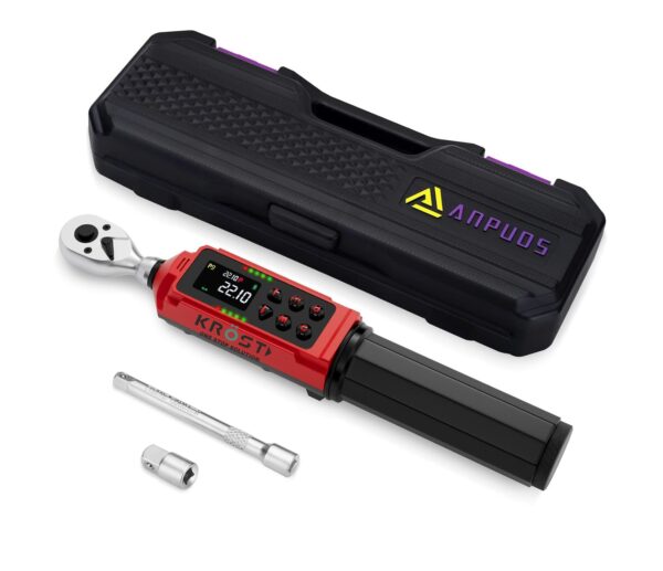 KROST 1/4" Drive Digital Torque Wrench, 0.33-22.1Ft.lbs/0.45-30Nm, Adjustable Electronic Torque Wrench Set with ±1% Accuracy, Vibration, Buzzer and LED Flash Notification for Bicycle, Bike