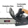 [Triplex Safety Protection] KROST chainsaw features with a safe lock-off button, 90°rotatable top guard baffle, plus rubberized and ergonomic grips for user safety.
