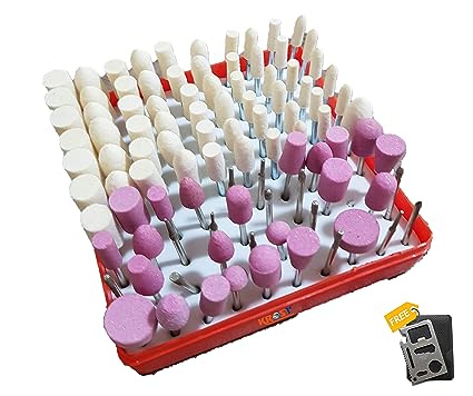 Best effect used with electric drills, grinders or Dremel rotary tools. Make your polished goods more cleaner and brighter. with 50pcs Cylinder shaped grinding heads, and 50pcs Tapered shaped, different sizes of them (Diameter: 10mm, 8mm, 6mm, 5mm, 4mm) 1/8 Inch Shank