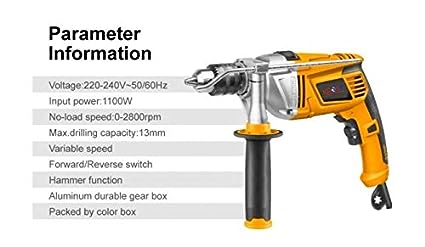 Package Includes: 1pc 1100w Drill Machine , 5pc Masonary/Wall/Concrete Bit Set(4mm,5mm,6mm,8mm,10mm)