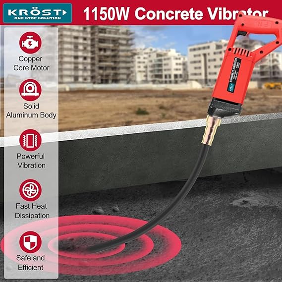 • POWERFUL CONCRETE VIBRATOR: Power: 1150; Diameter: 35MM; Vibration Frequency: 13,000 VPM; Concrete mixer to help settle concrete and remove air bubbles from slabs & footings.