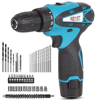 KROST 12V Cordless 40pcs Drill Machine Kit, Li-ion Dual Speed Keyless Chuck Drill |Cordless Drill | Drill Driver | Screwdriver with 2 Batteries, LED Torch Variable Speed and Torque Setting (18+1).
