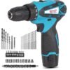 [What's Included] : 12V lithium-ion battery cordless drill and charger, 13pcs hss drill bits, 5pcs wood drill bits, 10pcs driver bits, 9pcs sockets, an extension bar for sticking on the fastener, 1pc screwdriverbit, and a magnetic flexible shaft for hard-to-reach places.