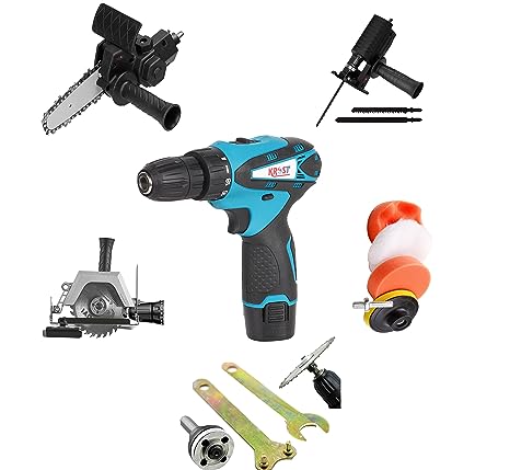 KROST 12V Cordless Drill Tool Combo 5-In-1 Multi-Head Drill Machine Kit, Li-ion Dual Speed Keyless Chuck Drill |Cordless Drill | Drill Driver with 2 Batteries, and Torque Setting (18+1).