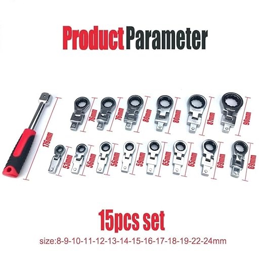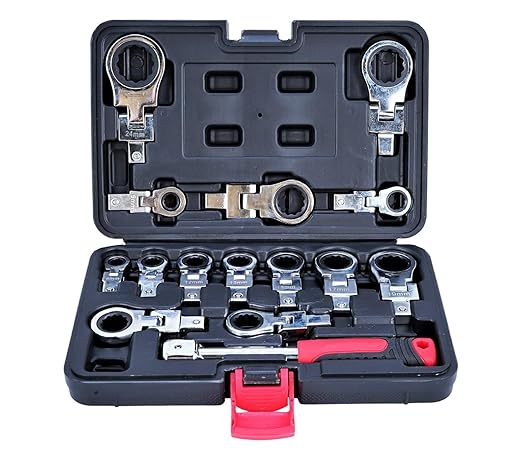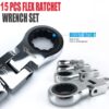KROST 15-Piece flex head ratchet wrenches set, Tool Gear Metric Tubing Large Torx Angle Tool Set Swivel Flat Wrench Sets