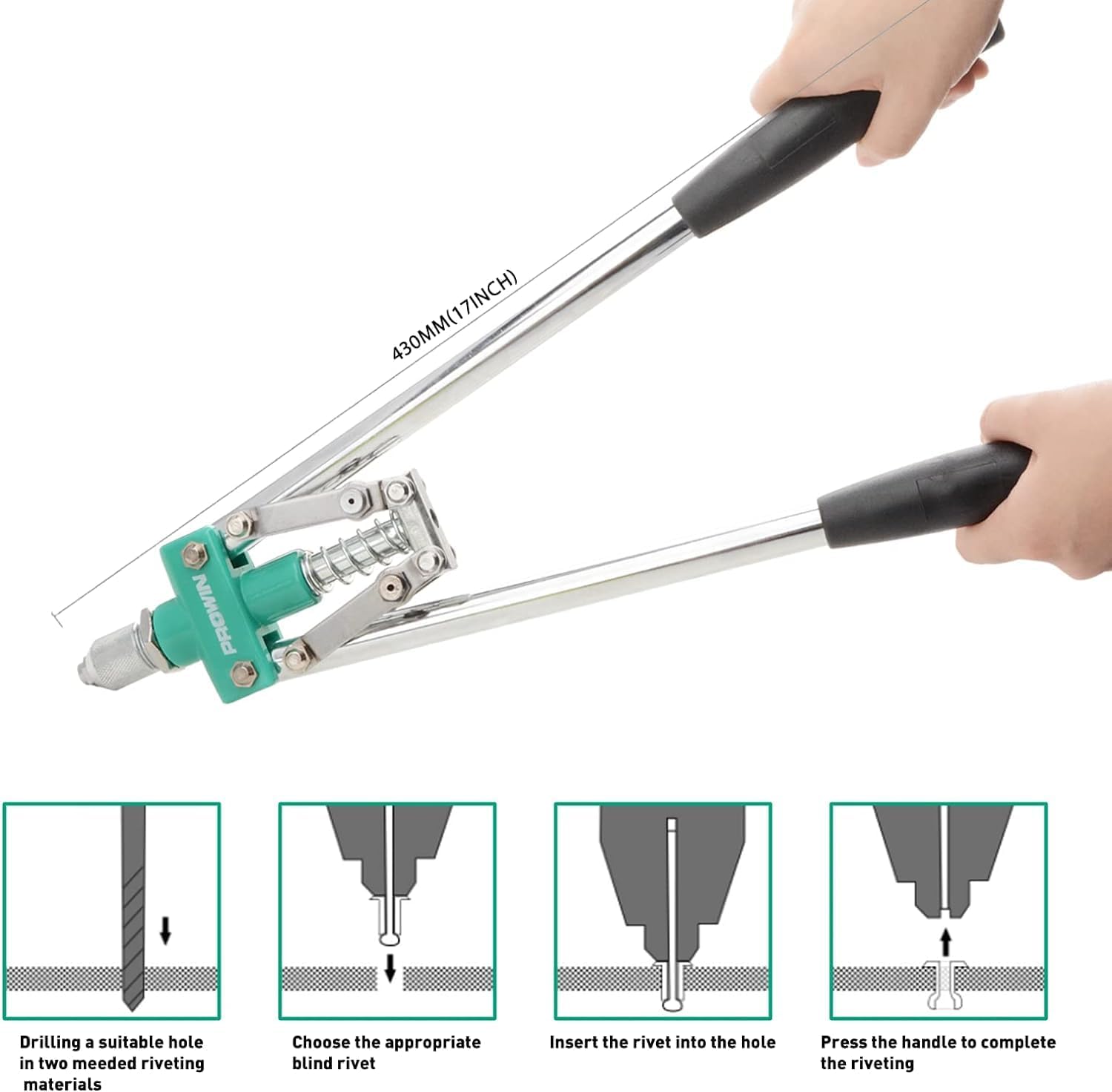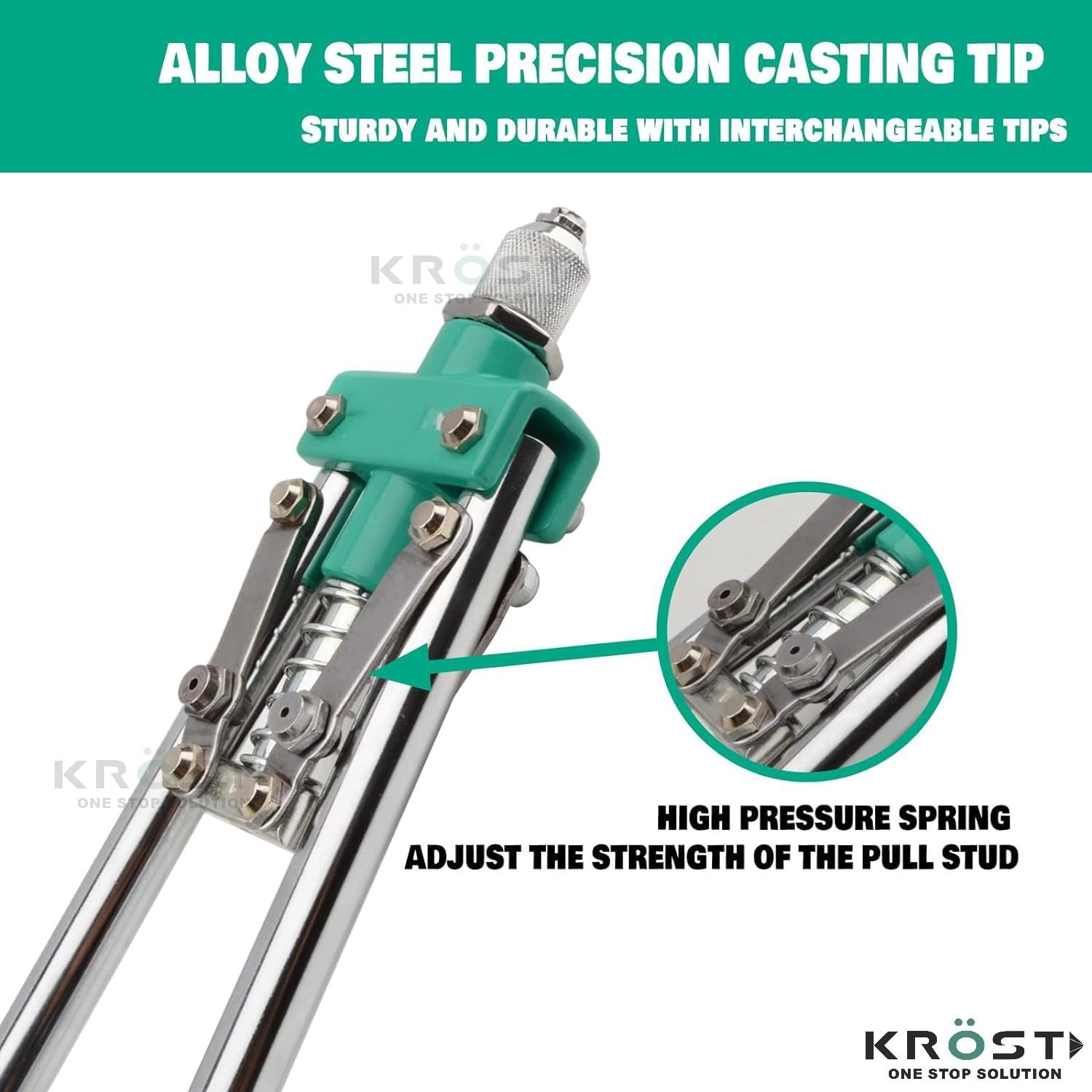 KROST 17" Non Slip Double Handle Rivet Gun With Pop Rivets, Hand Pull Riveter Nail Gun, Manual Pull Rivet Pliers and 100 nos of Assorted Blind Rivet