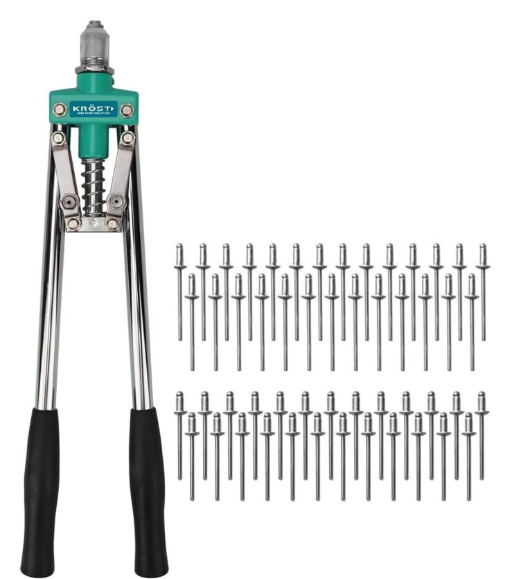 KROST 17″ Non Slip Double Handle Rivet Gun With Pop Rivets, Hand Pull Riveter Nail Gun, Manual Pull Rivet Pliers and 100 nos of Assorted Blind Rivet