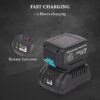 21V Lithium battery (5.0aH) gives more power to the impact wrench and a longer workload, fully charged in just 2.5 hours with the quick charger. Socket Drive:1/2".