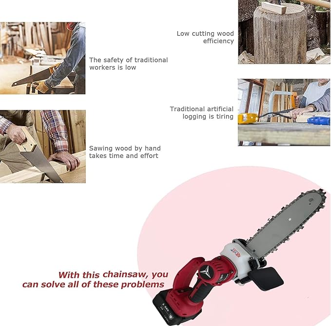 Cordless design, portable, easy to carry out and saw the wood, use freely in anywhere anytime. Ergonomic handle design, one hand use, long time griping will not tired hands.