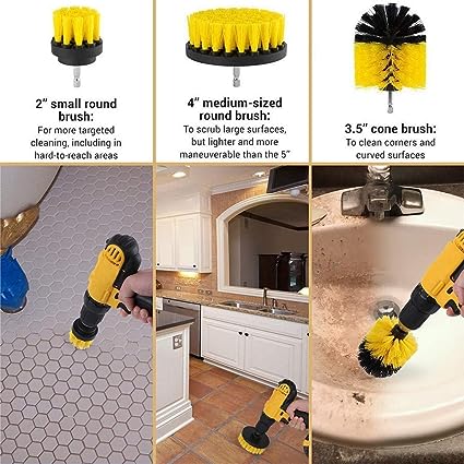 Krost™ 3 Pcs Electric Drill Brush Power Scrub for Floor, Bathroom, Tile, Car, Grout, Kitchen and Other Cleaning (ONLY Brush Set).