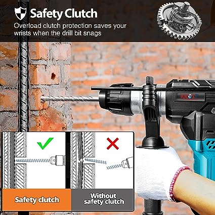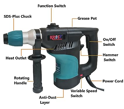 【WIDE APPLICATION】 Reliable heavy duty construction rotary hammer is suitable for professional or daily home users. The KROST rotary hammer will make it an easy job no matter remove tiles or demolishing brickwork. And it is suitable for wood, masonry, concrete, brick and metal.