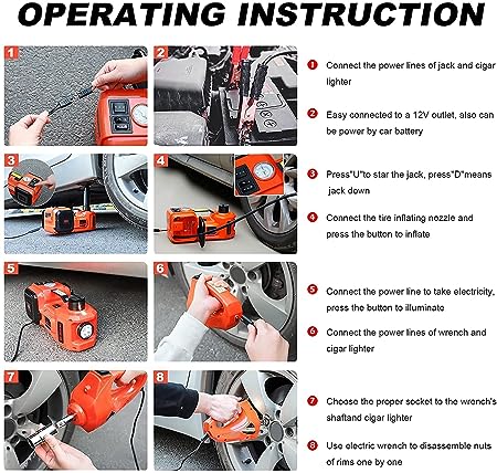 Multi-function Tool Box: All the essential equipment included for changing a tire. The LED light enables operation at night, The red triangle warning sign outside the box can be used as a warning road sign when repairing on the highway. The tire inflator is quite beneficial, it can also inflate the balls bike and other inflatable products