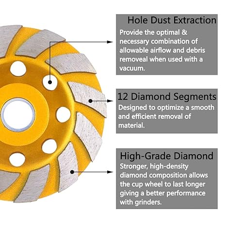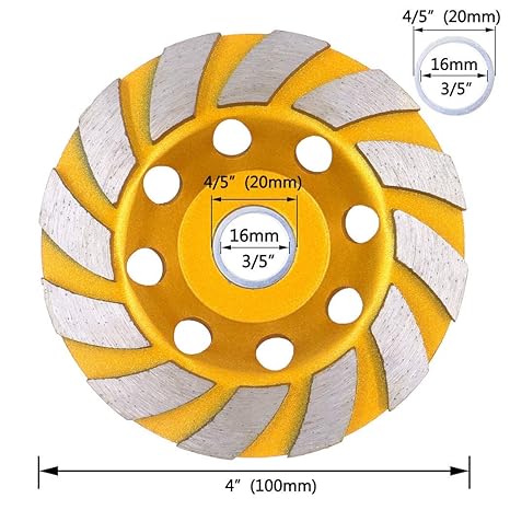 KROST 4 inch Diamond Cup Grinding Wheel, 12-Segments Heavy Duty Turbo Row Grinding disc for Angle Grinder Polishing and Cleaning Concrete Granite Marble Stone Rock Cement (3)