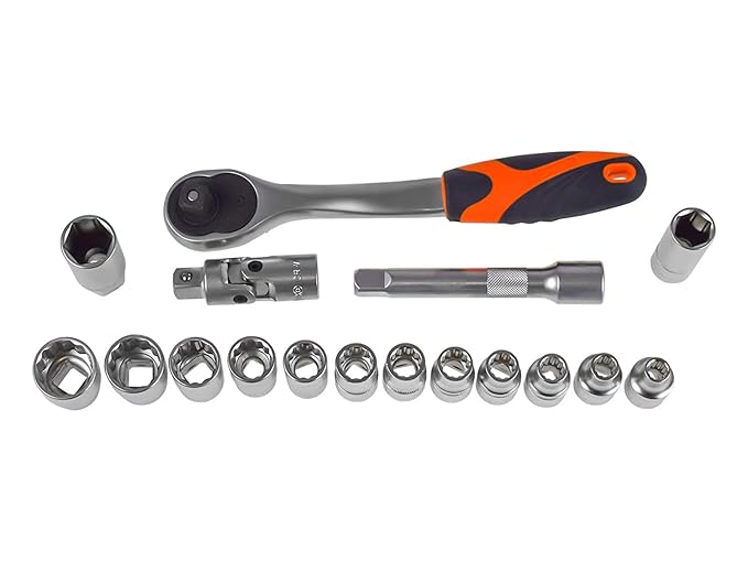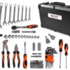 1pc 200mm combination plier 1pc 250mm water pump plier 1pc 300g machinist hammer 9pc Combination spanner 8,9,10,11,12,13,14,17,19mm 4pc screwdriver,5*100mm,6*125 mm,PH1*100mm,PH2*125mm 32pc 25mm screwdriver bits 1pc 60mm magnetic bit holder 9pc hex hey :1.5-2-2.5-3-4-5-6- 8-10mm 1pc 1/2” ratchet handle 12pc 1/2” sockets:8,9,10,11,12,13 ,14,15,17,19,22,24mm 2pc 1/2” spark plug sockets 16,21mm 1pc 1/2” extension bar 125mm 1pc 1/2” universal joint