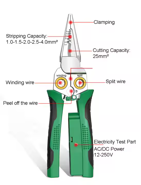 KROST 8-In-1 Stainless Steel Multifunctional Electrician's Pointed Nose Pliers for Wire Stripping and Electrical Measurement