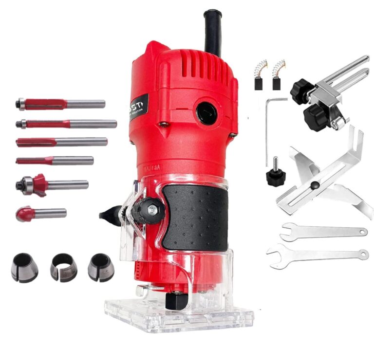 KROST 800W Palm Router, Wood Trimmer 32000RPM with 6 Router Bits & 6mm, 6.35mm, 8mm Collets Specially Designed for Wood Working
