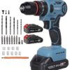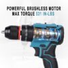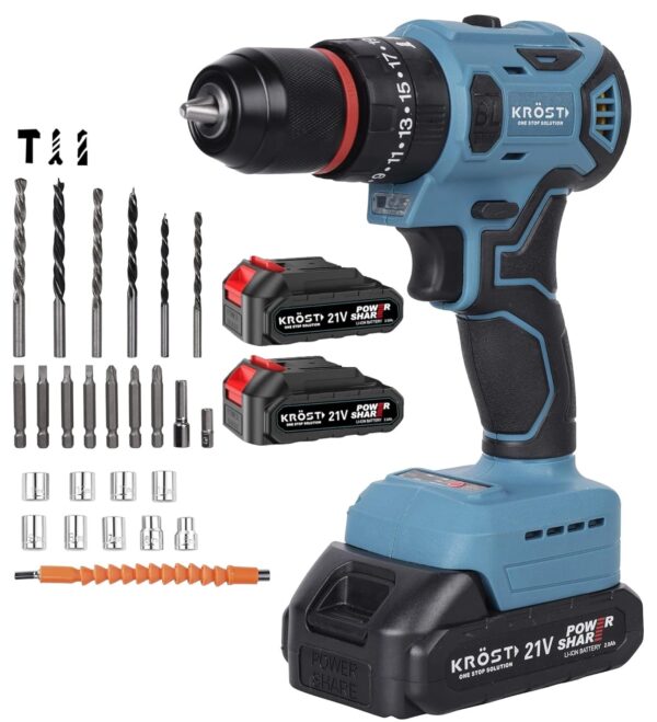 KROST Brushless Cordless Hammer 21v Drill Motor Multi Function Drill, Metal Chuck - 25 Stage Torque Screwdriver Keyless Drill Chuck 2pcs 21V Li-Ion Batteries Extra 30 Tools (Brushless Drill)