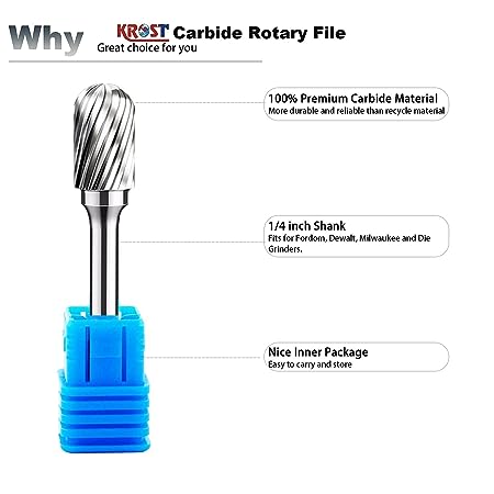 KROST Carbide Rotary Burr, Tungsten Carbide Rotary Burr Set, 1/4 inch Shank Die Grinder Bits, Carbide Rotary File for Metal Wood Carving, Engraving, Polishing, Drilling. (B4)