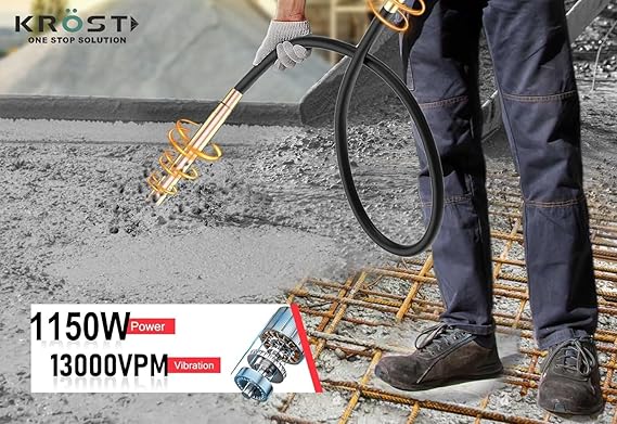 POWERFUL CONCRETE VIBRATOR: Power: 1150; Diameter: 35MM; Vibration Frequency: 13,000 VPM; Concrete mixer to help settle concrete and remove air bubbles from slabs & footings.