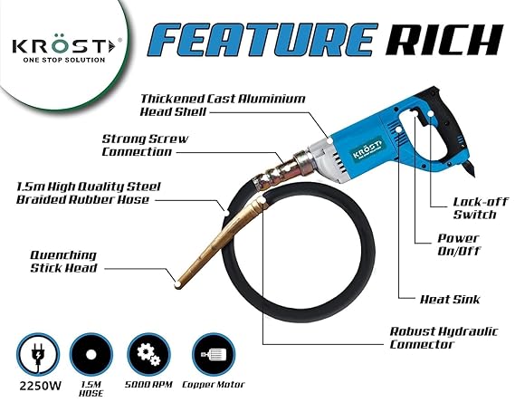 KROST Concrete Vibrator 2250W Extensive 35 mm Drill Needle 13000 Vibrations per Minute (Tool + 1.5m+ 2m Needle)