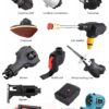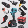 • 9× Tool Attachments (Drill, Hammer, Jigsaw, Reciprocating Saw, Sander, Blower, Chainsaw, Pressure Washer, Impact Driver)