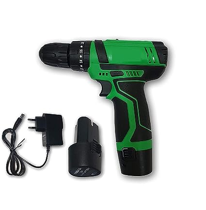 Cordless Screwdriver: 18 Torque clutch for perfect screw driving into a variety of materials ,Spring loaded slide pack battery system for quick and easy battery change and a more secure fit reverse switch for added versatility and LED light for working in dark sites (12V lithium ion battery, 1350rpm);