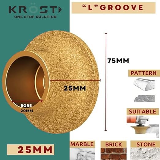 KROST Diamond Marble Moulding Blade Brazing Granite Moulding Wheel,25mm L-Shape Inner Grove Marble Moulding Blade,Profile Wheel For Marble, Granite,Stone (25mm)