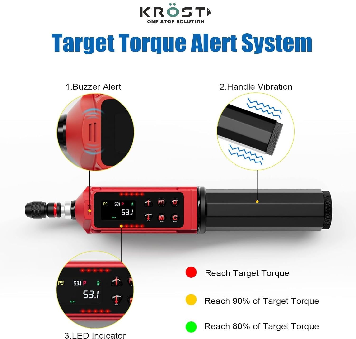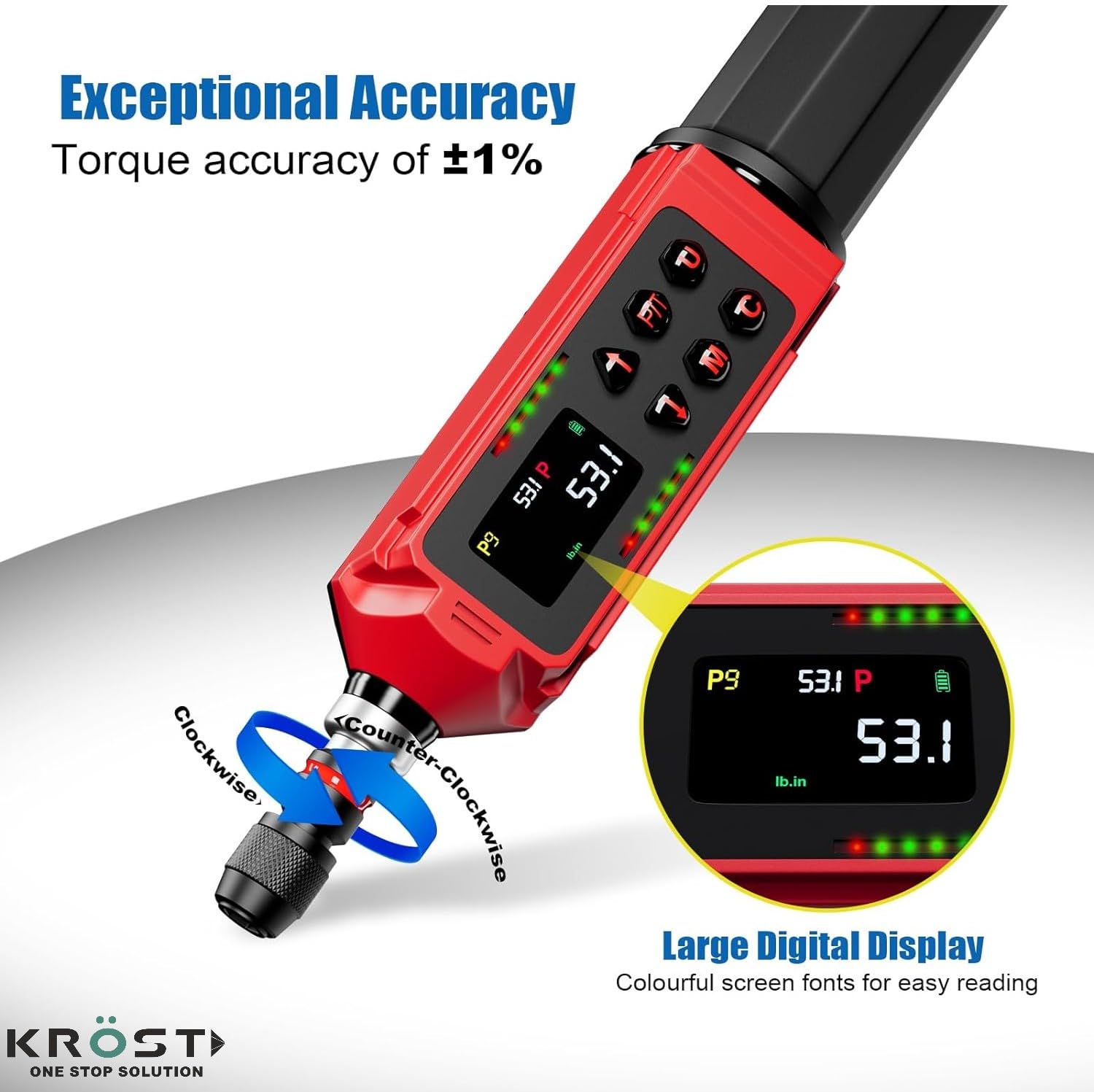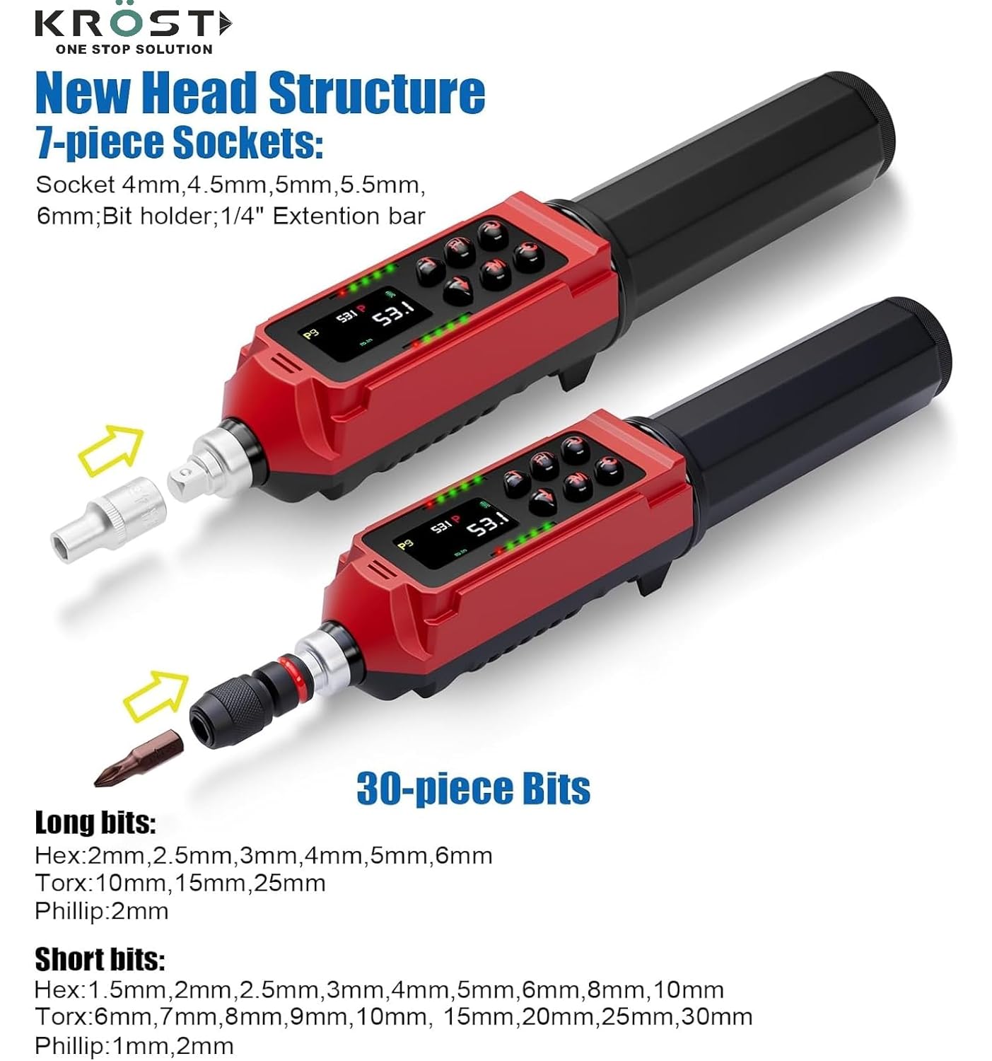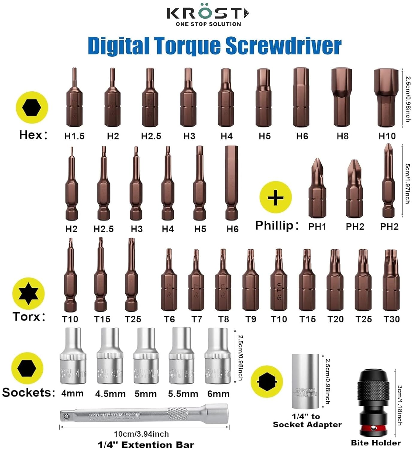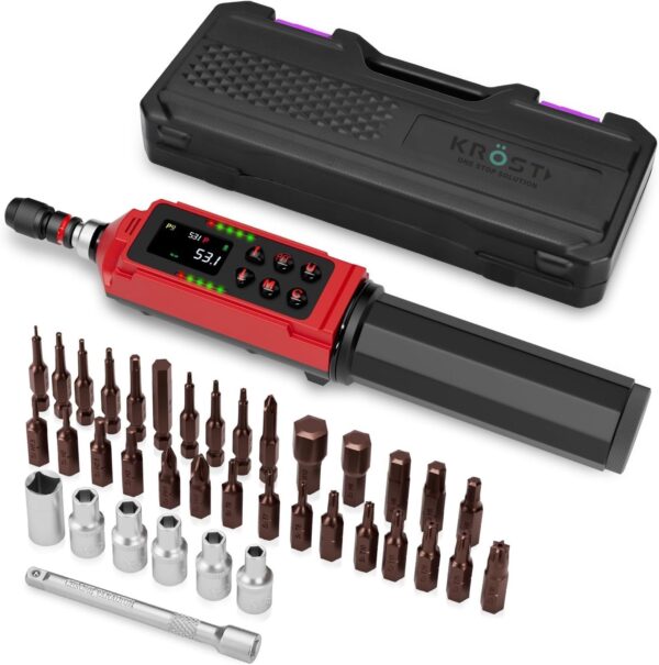 KROST Digital Torque Screwdriver 0.09-6Nm (0.8-53.1in-lbs) Electronic Adjustable Torque Screwdriver Wrench Set with ±1% Accuracy, Vibration, Buzzer and LED Notification for Bike Repairing