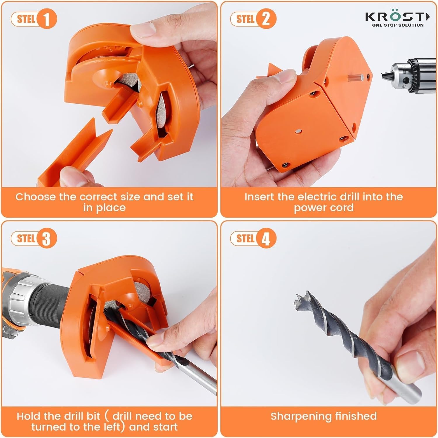 • Sharpen a drill in 5 seconds! This multi-purpose drill sharpener is an ideal tool for sharpening drills quickly and easily. It is powered by electric drills and is suitable for all types of drills such as high speed steel, carbide, twist drills and cobalt. It can also be used for other tools like kitchen knives and more.