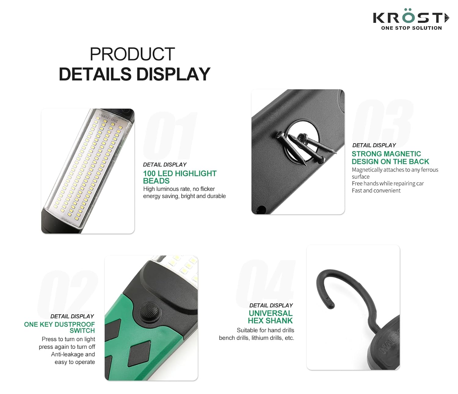 KROST ECO SERIES 380NM Brushless Cordless Impact Wrench Kit, 21V Double Li-Ion Batteries,Auto Stop Function with Drill Chuck & Adapter,Work Lamp, Impact Socket Set Combo Kit
