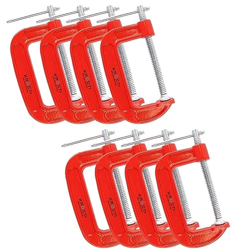 KROST Heavy Duty C and G Clamp Set, 6" C-Clamp for Metalworking, Woodworking, 6-Inch Max Jaw Opening, Red (8pcs)