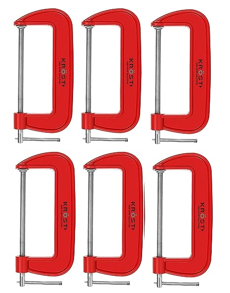 KROST Heavy Duty C and G Clamp Set, 8" C-Clamp for Metalworking, Woodworking, 8-Inch Max Jaw Opening, Red (6pcs)