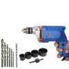 In the box: Drill machine, 2 sets drill bits, wood hole saw set