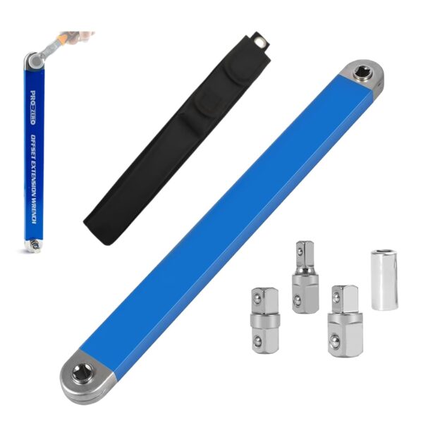 KROST Offset Extension Wrench Set, Off Set Extension Wrench 15.4" with 1/4",3/8",1/2" Square Drive Adapters and 1/4" Socket Offset Ratchet Extension for Tight Spaces