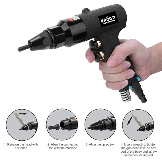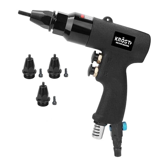 KROST Pneumatic Rivet Nut Gun, Air Rivet Nut Pull Setter Tool with 3 Size Quick-Change Nose-Piece Assembly (M6,M8,M10)