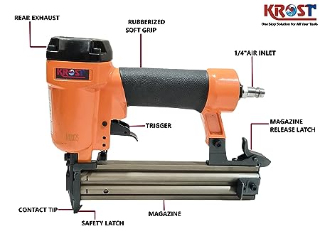 KROST Pro-Series 18 Gauge 32mm Pneumatic Brad Nailer Machine with Safety Lock (Nailer + 12mm Nails)