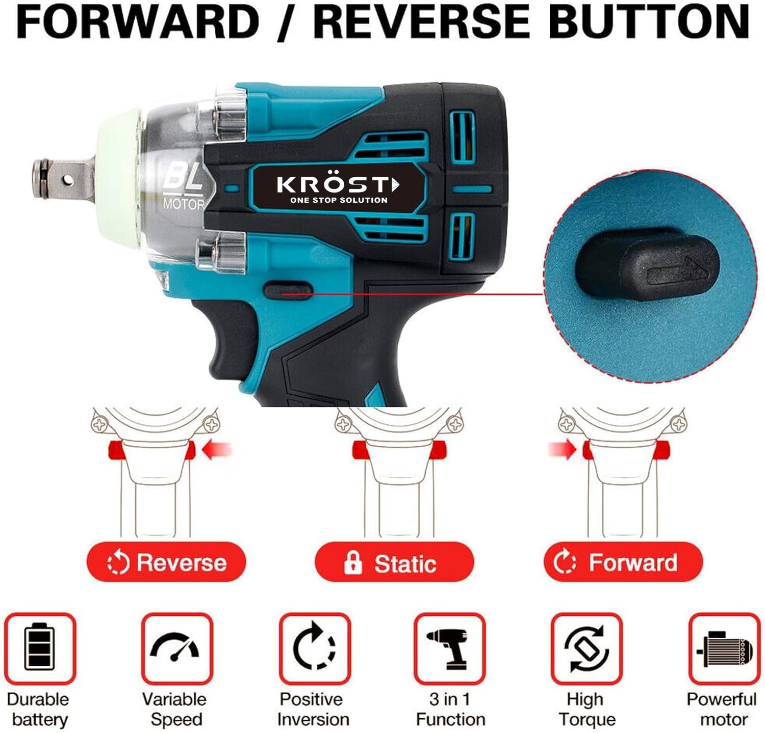 KROST Cordless impact wrench 1/2" inch 400nm breakaway torque, easily removing stubborn bolts and fasteners. It Can be applied to tire demolition, auto repair, machine repair, pipe repair, scaffolding and construction work, etc. Cordless impact wrench with high performance brush motor. No sparks, no overheating, long service life. Excellent performance, up to 40% more service life. Power impact wrench with 2-stage torque selection. Control in your hands. Select different torques according to your task. Impact wrench with super bright built-in led. Provides illumination at work.Powerful enough to break off the nuts/ bolts in seconds. Ideal for removing and tightening truck tires, heavy equipment maintenance, metal construction projects and product assembly. Auto-brake function ensures that the nut will not fall off easily when you remove it. Compared with other battries, it can extend more than 50% of working time. A fast charger greatly reduces the charging time of the 2.0Ah battery and speeds up your work efficiency. Torque: 400nm; RPM: 0-2300, Brushless Motor makes it easy to loosen nuts, bolts and screws from bikes, motorcycles, engineering projects. High performance motor that increases service life and availability. Motor is brushless Portable cordless impact wrench to remove tires with 1/2'' chuck provide maximum durability and great accessory compatibility, The compact head design makes it easier to access tight spaces.Our battery tire impact wrench is not only suitable for removing tires from cars, commercial vehicles, motorcycles ,but also can be used for automotive repairs, major construction projects, heavy equipment maintenance, or product assembly.| 5 star | 0% | |