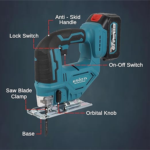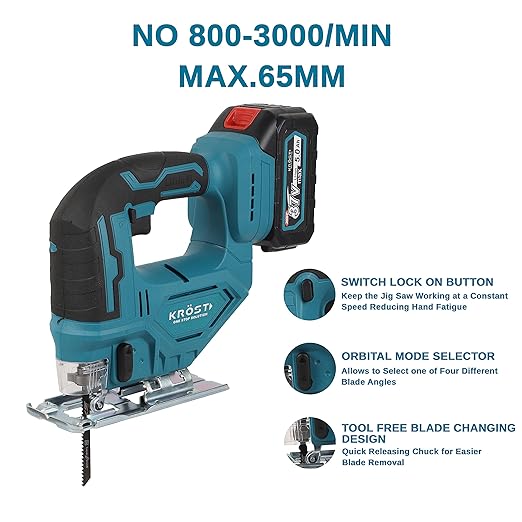 KROST Pro Series 21V Cordless Jigsaw Machine with LED Light, Orbital Settings and 3000 SPM Variable Speed (Cordless Jigsaw)