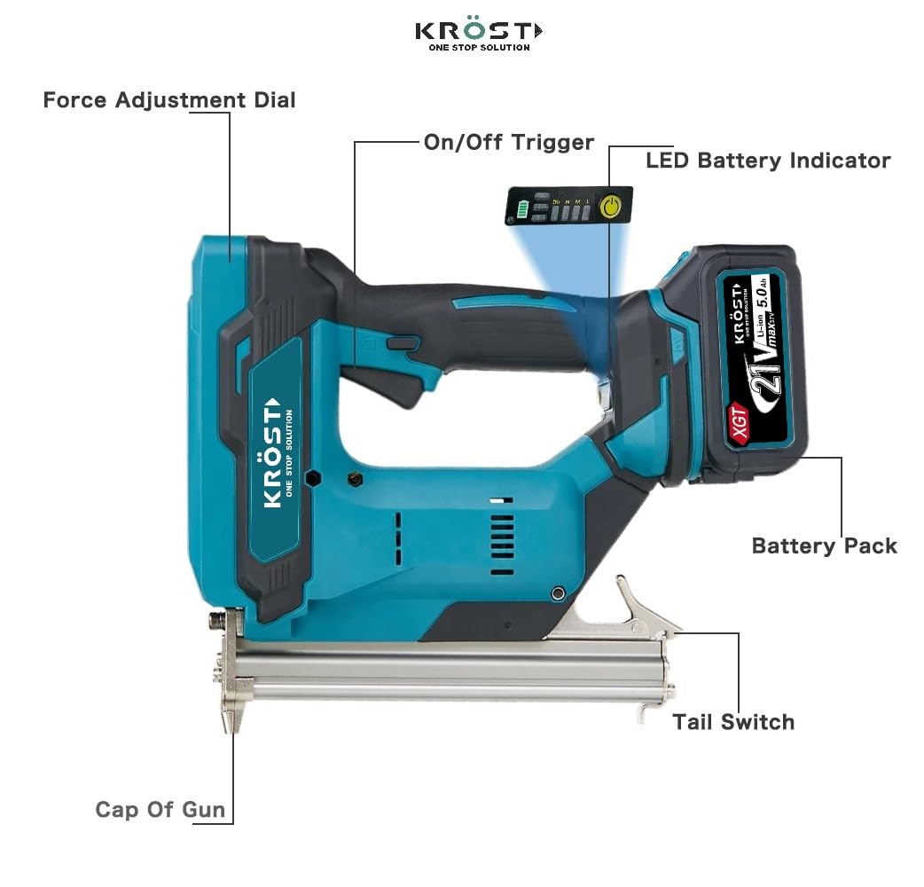 KROST PRO Series Cordless Brad Nail Gun, Brushless Motor Nailer Machine, 18gauge Nails, F30 Battery Operated Nailer Machine
