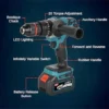 KROST Pro Series Cordless Brushless Hammer Drill Machine, 21V(37V MAX)13mm Metal Chuck With 1x5.0Ah Li-ion Batteries And 1pc Fast Charger (Single Battery Combo)
