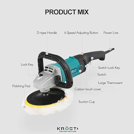 KROST Car Buffer Polisher with 6.6A powerful motor delivers stable power and low noise. Swirl-free, scratch-free polishing and sanding action to protect vehicle surface. 6 speed setting between 800-3000 RPM ensures work at more accuracy and precision speed, constant power with stable power to enhance the working efficiency. Safety on/off switch with lock-on button for continuous operation, can save effort and reduce the fatigue. Perfect for finishing, compounding, waxing, polishing, buffing and deoxidizing, polishing home appliance and furniture, as well as adding brightness of glass. Includes a woolen fleece polishing bonnet, a handle, and a hook and loop base pad. Car polisher motor power comes with high 1200w Motor for higher efficiency, Comes with 100% Copper winding motor for longer life & high efficiency.