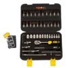 Package Includes: Sockets from size 4mm upto 14mm,Screw Driving bits 3mm upto 8mm,Torx bits T8,T10,T15,T20,T25,T30,T40,Allenkey 1.27,1.5,2,2.5mm,Extension Bar & Sliding T-bar for easy operation