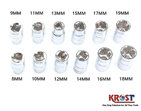 KROST T Shaped Socket wrench, 1/2″ Drive Spanner Set 13pcs Handle Wrench Spanner with 8-19mm Socket Tool Set