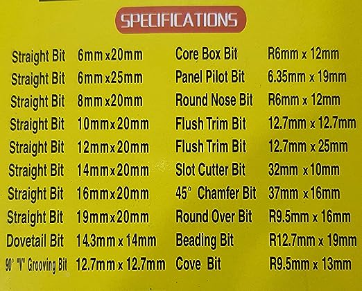Precision ground 8mm shanks, professional grade for wood working. Carbide- tipped router bits. Handsome aluminum carrying case professional for wood working.