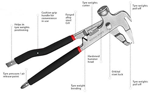 KROST Wheel Balancing Weight Plier Hammer With 11 in 1 Pocket Tool, 250mm, Red and Silver