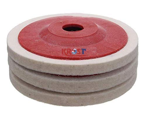 KROST Wool Felt Buffing Pad Wheel Disc for Polishing Stainless steel,Metal,Marble, Glass, Ceramic, 4 inch Angle Grinder Abrasive Rotary tool accessory - white, 100 x 16mm x 16mm dia. (3)