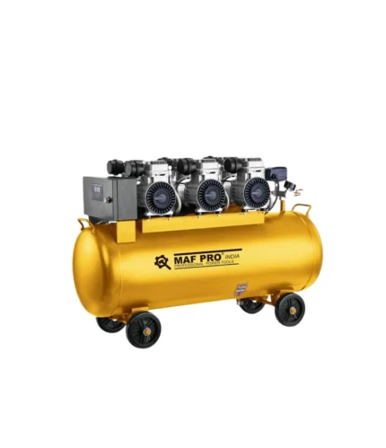 The MAF Pro 100L Oil-Free Air Compressor is a high-capacity, industrial-grade air compressor designed for demanding applications that require a large volume of compressed air. With a 100-liter tank, it is capable of handling extended operational periods without frequent cycling. Its oil-free design ensures cleaner, oil-free air, making it suitable for environments that require air purity, such as food, pharmaceutical, and automotive industries.